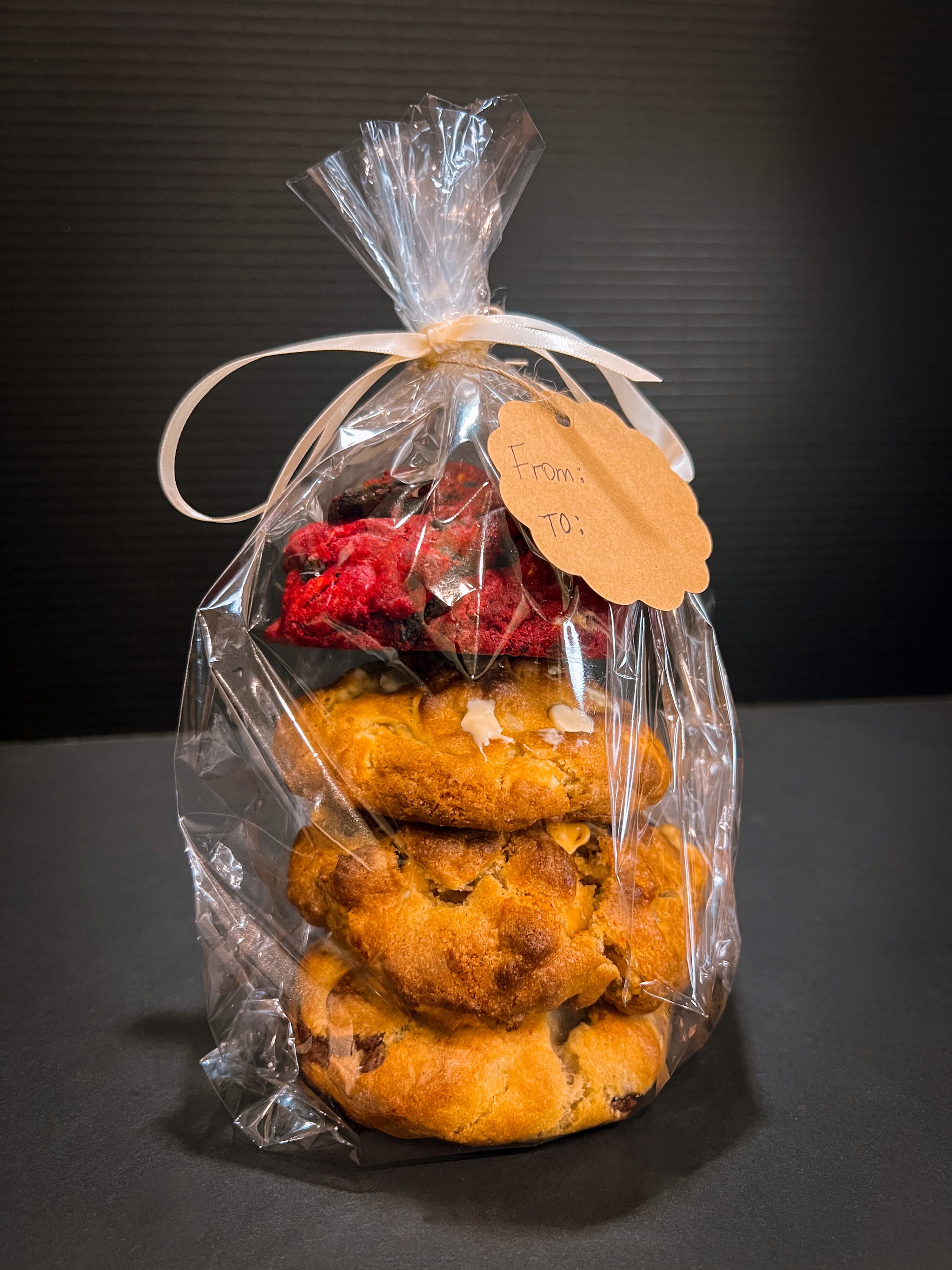 Give a gift that will surely make you someone's favorite person. This pack includes White Chocolate Macadamia, Butterscotch Walnut, Red Velvet and Chip Happens